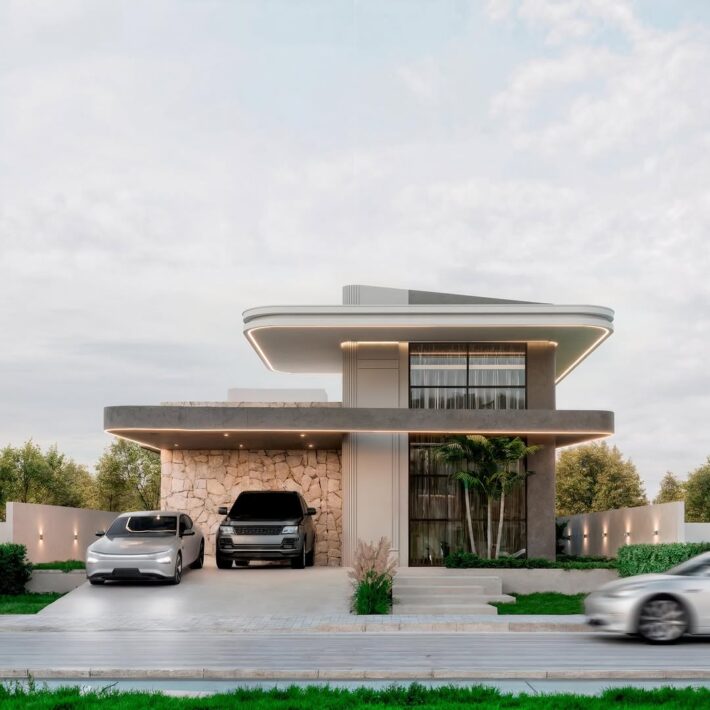 💡 fachada com perfis em LED