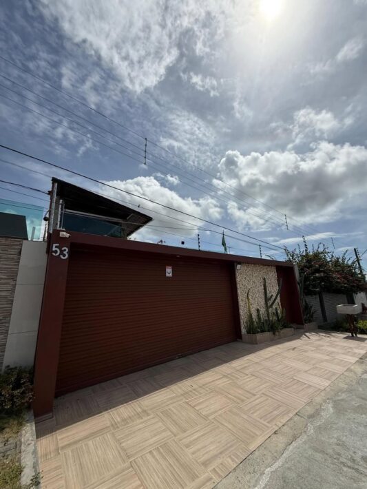 Fachada reformada, sistema de segurança com câmeras e cercas.