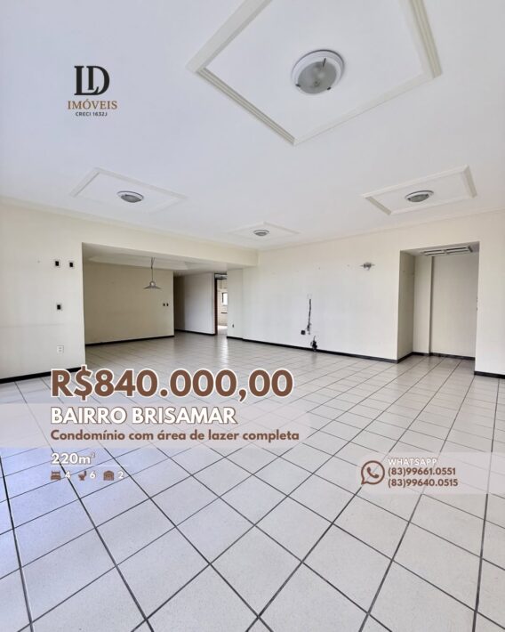 Apartamento à venda por R$840.000,00, no Bairro Brisamar em João Pessoa/PB, com 220m², e lazer completo!
