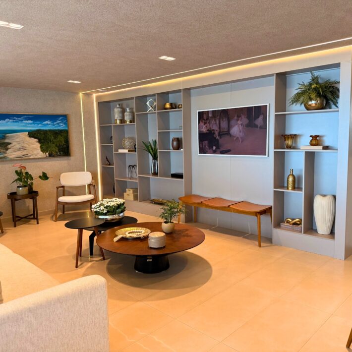 ⦁ Sala de TV com rack projetado