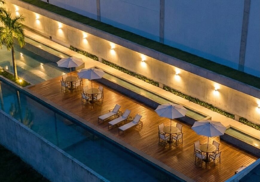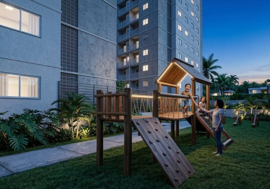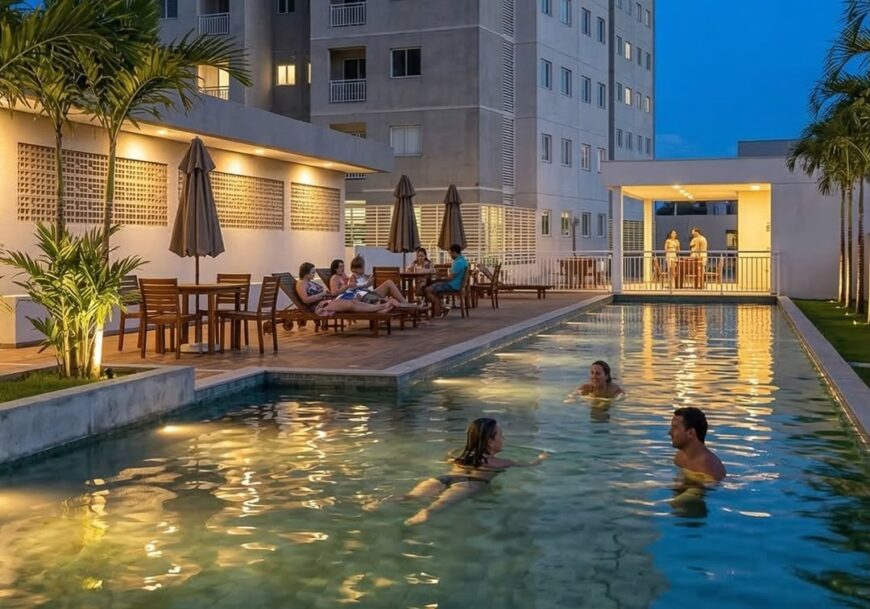 Área de lazer completíssima, já entregue totalmente mobiliada e decorada, garantindo praticidade desde o primeiro dia.
