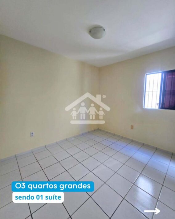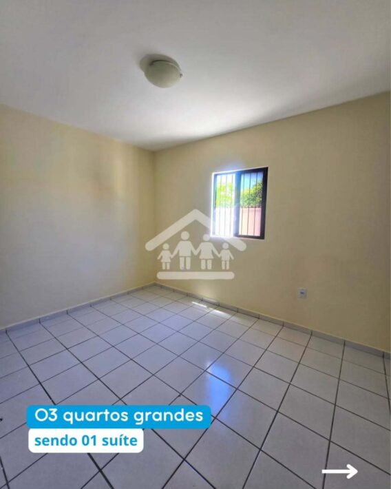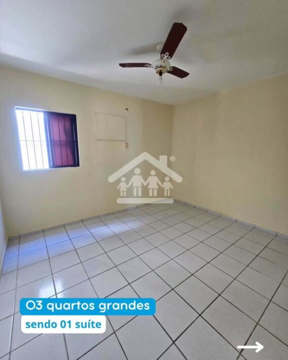 03 quartos espaçosos, sendo 01 suíte