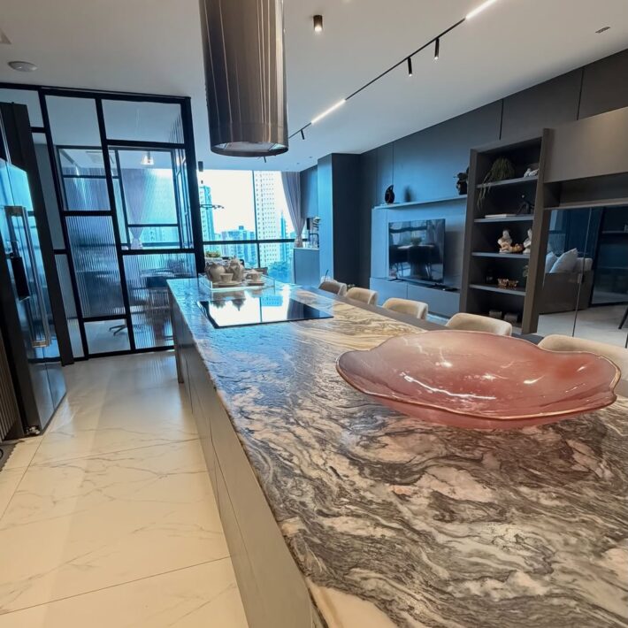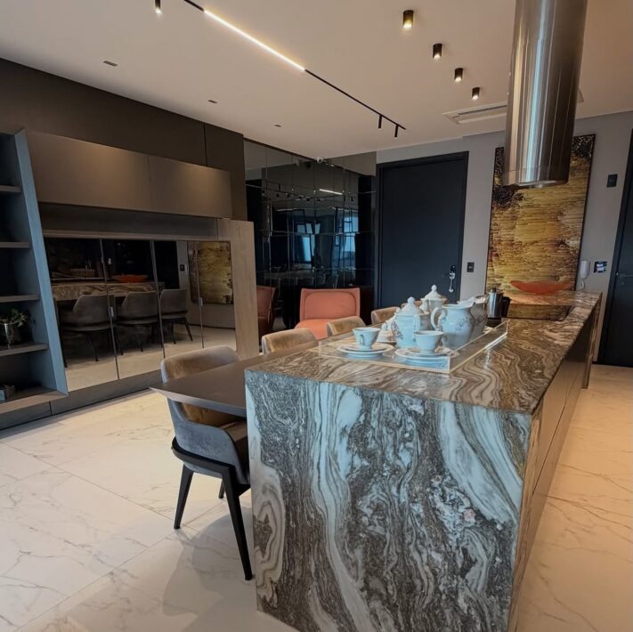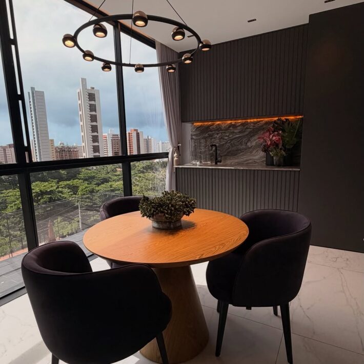 Sala com varanda e cozinha integrada